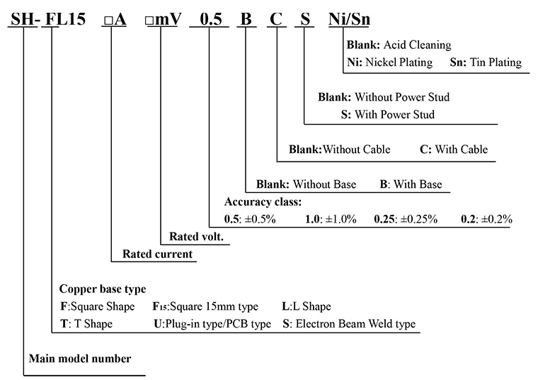 • .Temperature rise: Electrify the shunt with rated current for 2hr, test it after temperature rising stable, the temperature rise should be≤80K when the rated current under 100A; and should be ≤120K when the rated current higher than 100A.